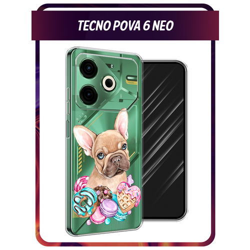 Чехол на Tecno Pova 6 Neo / Техно Пова 6 Нео с принтом Бульдог и сладости, прозрачный