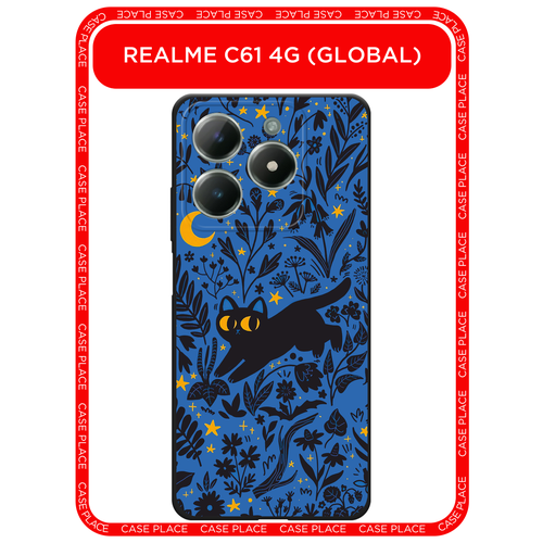 Черный матовый чехол на Realme C61 4G (Global) / Реалми C61 4G с принтом Ночной котик