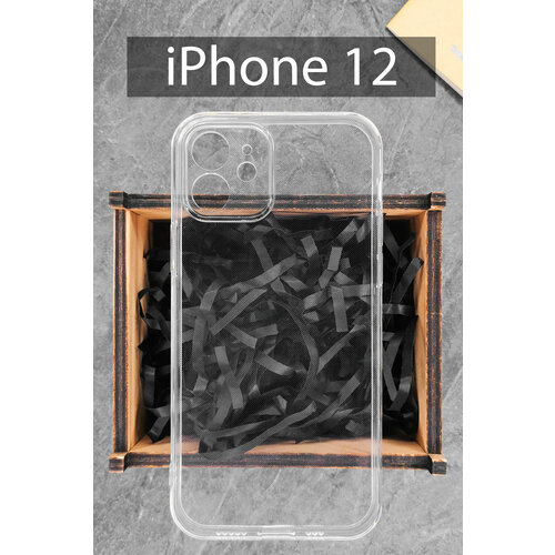 Силиконовый прозрачный чехол для iPhone 12 на Айфон 12 с защитой камеры