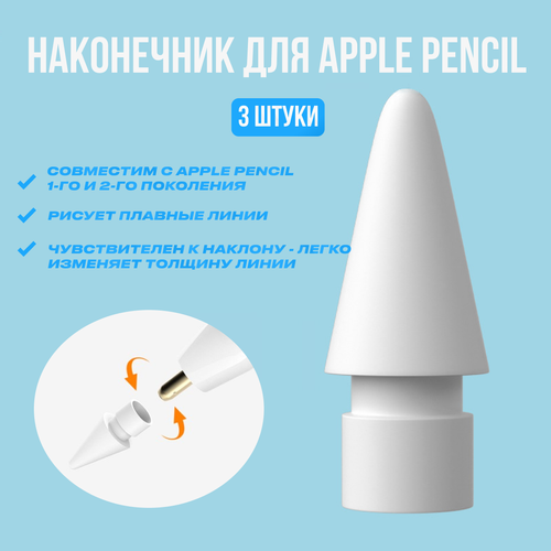 Наконечники для Apple Pencil, индуктивные, сменные, белые, 3шт