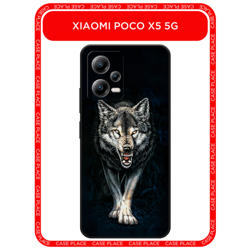Черный матовый чехол на Xiaomi Poco X5 5G / Сяоми Поко X5 5G с принтом Злобный волк из ночи