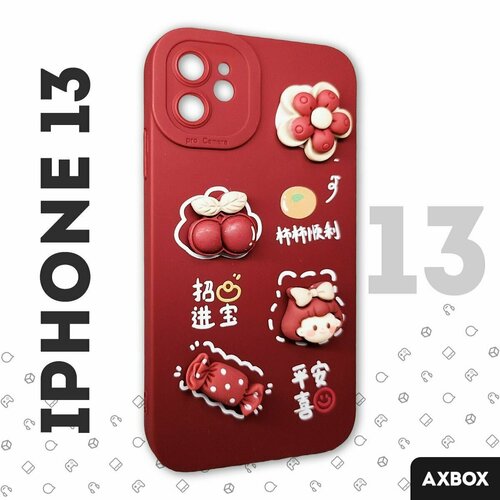 Силиконовый чехол для Apple iPhone 13 (на Айфон 13) красный, с рисунком, с защитой камеры