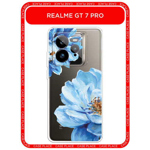 Чехол на Realme GT 7 Pro / Реалми GT 7 Про с принтом Голубые клематисы, прозрачный