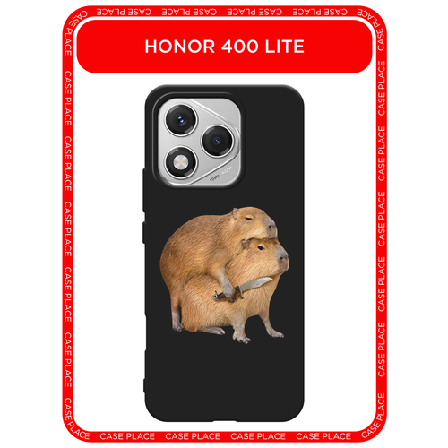 Черный матовый чехол на Honor 400 Lite / Хонор 400 Лайт с принтом Капибара с ножом