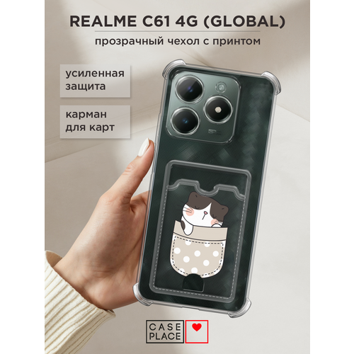 Чехол на Realme C61 4G (Global) (Реалми C61 4G) с картой и принтом Котик подмигивает в кармане