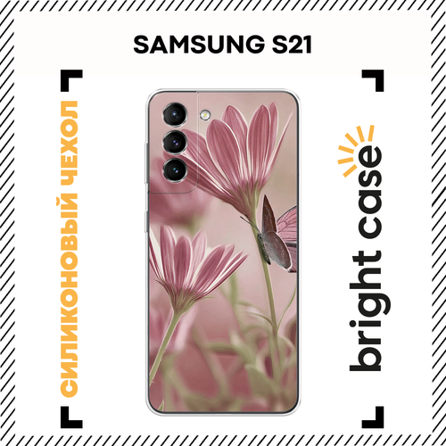 Чехол на Samsung Galaxy S21 / Самсунг S21 с принтом Цветы и бабочка