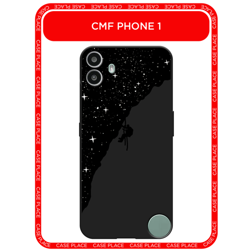 Черный матовый чехол на CMF Phone 1 / CMF Фон 1 с принтом Скалолаз в космосе