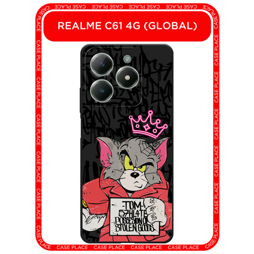 Черный матовый чехол на Realme C61 4G (Global) / Реалми C61 4G с принтом Том и граффити