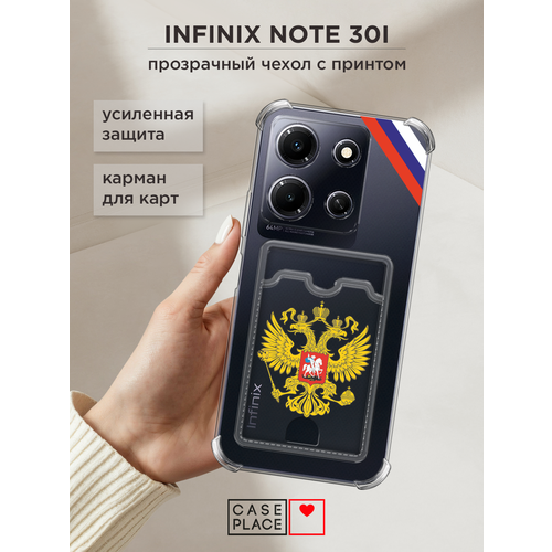 Чехол на Infinix Note 30i (Инфиникс Нот 30i) с картой и принтом "С гербом России"