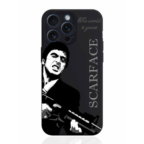 Чехол для смартфона iPhone 15 Pro Max черный силиконовый Scarface Tony Montana/ Лицо со шрамом