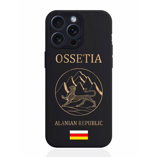 Чехол для смартфона iPhone 15 Pro Max черный силиконовый Золотой Герб Северной Осетии