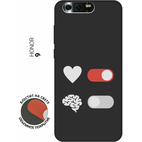 Матовый Soft Touch силиконовый чехол на Honor 9, Хонор 9 с 3D принтом "Brain Off W" черный
