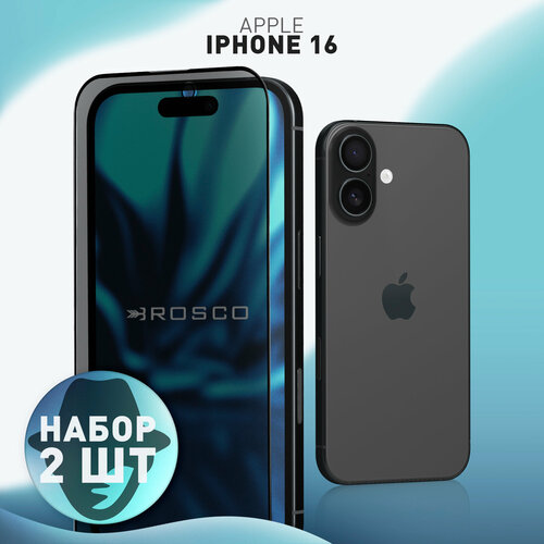 Набор защитных стекол антишпион на Apple iPhone 16 (Айфон 16), с эффектом приватности, чёрные рамки, 2 шт