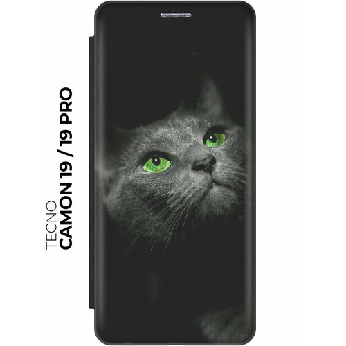 Чехол-книжка на Tecno Camon 19 / 19 Pro / Техно Камон 19 / 19 Про с рисунком "Зеленоглазая кошка" черный