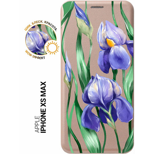 Чехол-книжка на Apple iPhone XS Max с принтом "Удивительные ирисы" золотой