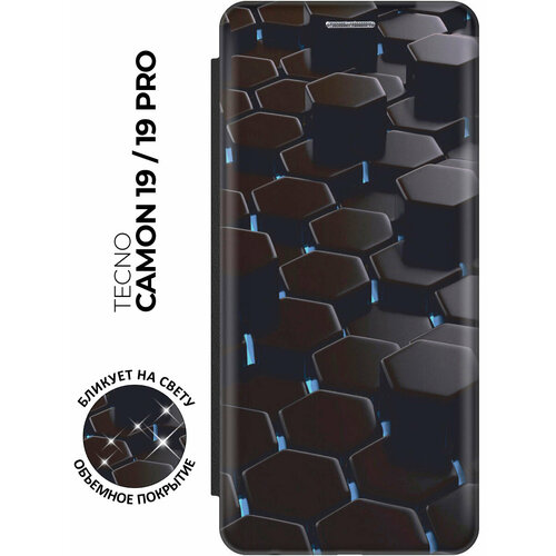 Чехол-книжка на Tecno Camon 19 / 19 Pro / Техно Камон 19 / 19 Про с рисунком "Алмазные грани" черный