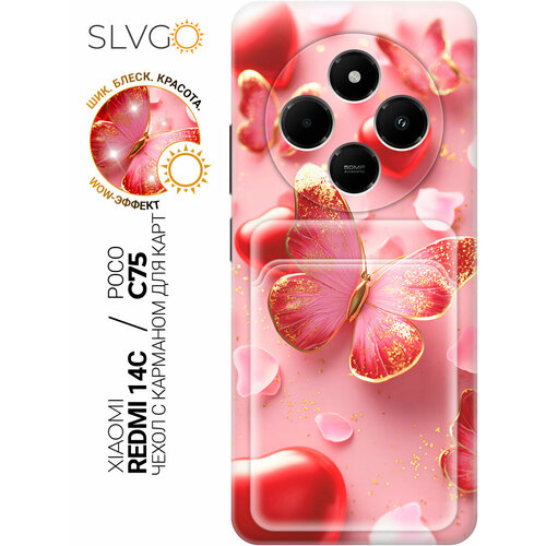 Силиконовый чехол на Xiaomi Redmi 14C / Poco C75 с принтом Бабочка в океане любви, pkt с карманом для карты