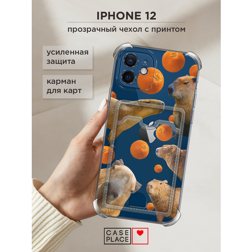 Чехол на Apple iPhone 12 (Айфон 12) с картой и принтом Капибара