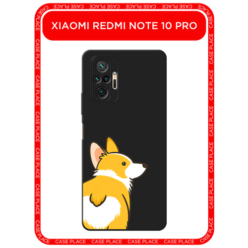 Черный матовый чехол на Xiaomi Redmi Note 10 Pro / Сяоми Редми Нот 10 Pro с принтом Корги следуй за мной