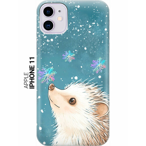 Силиконовый чехол на Apple iPhone 11 с принтом "Ежик и снежинки"