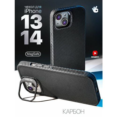 Чехол "О'кейси", для iPhone 13,14, MagSafe, карбоновый, черный/серый