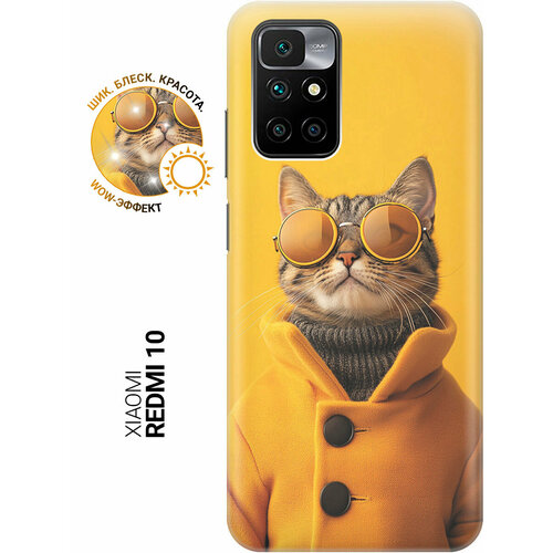 Силиконовый чехол на Xiaomi Redmi 10 с принтом "Котик в желтых очках"