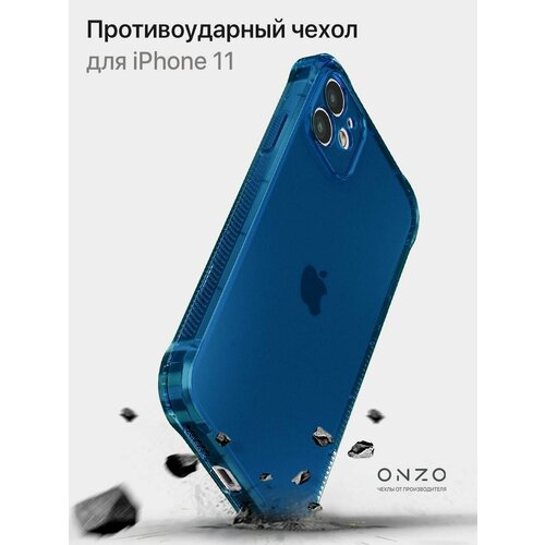 Чехол на Айфон 11 противоударный прозрачный синий iPhone 11 чехол