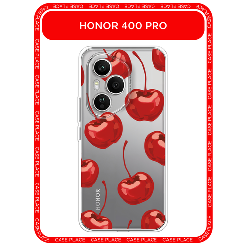 Чехол на Honor 400 Pro / Хонор 400 Про с принтом Алая вишня, прозрачный