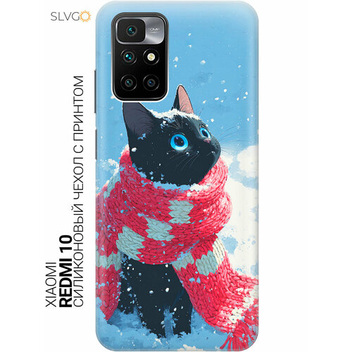Силиконовый чехол на Xiaomi Redmi 10 с принтом Зимний аниме кот, trn