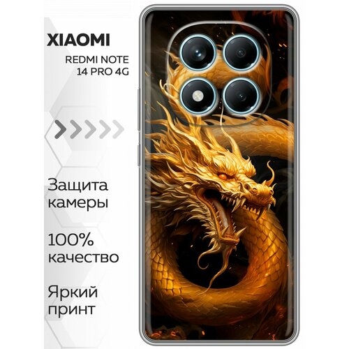 Чехол для Redmi Note 14 Pro 4G с принтом Дракон золотой (Редми Нот 14 Про 4G)