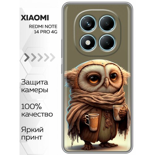 Чехол для Redmi Note 14 Pro 4G с принтом Смешная сова (Редми Нот 14 Про 4G)