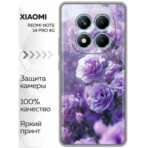 Чехол для Redmi Note 14 Pro 4G с принтом Цветы сиреневые розы (Редми Нот 14 Про 4G)
