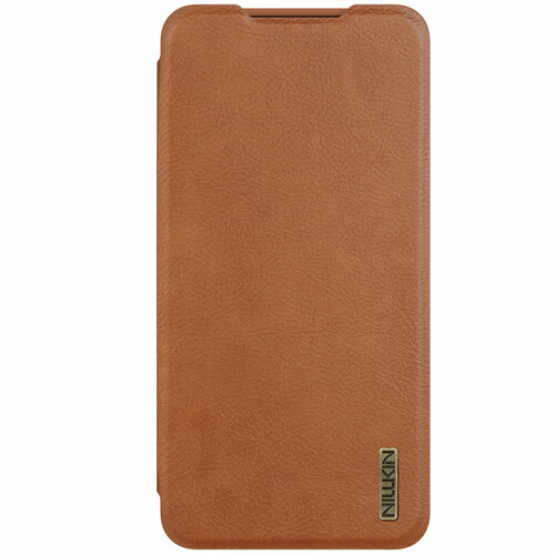 Кожаный чехол книжка коричневого цвета от Nillkin для смартфона Samsung Galaxy S25 Edge, серия Qin Pro Leather с сдвижной защитной шторкой для камеры