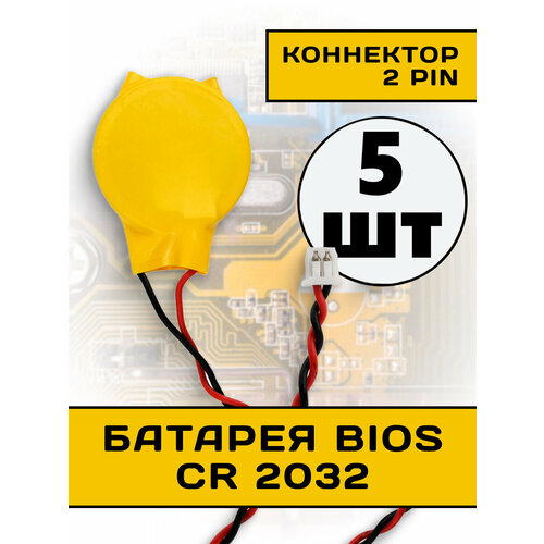 Элемент питания / батарея CR2032 для BIOS (биос) материнской платы / (2 pin) 5см кабель / 5 штук