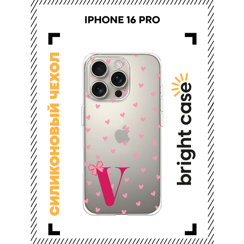 Чехол на Apple iPhone 16 Pro / Айфон 16 Про с принтом Буква V сердечки, прозрачный