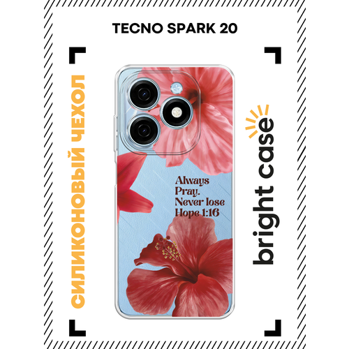 Чехол на Tecno Spark 20 / Текно Спарк 20 с принтом Красные цветы, прозрачный