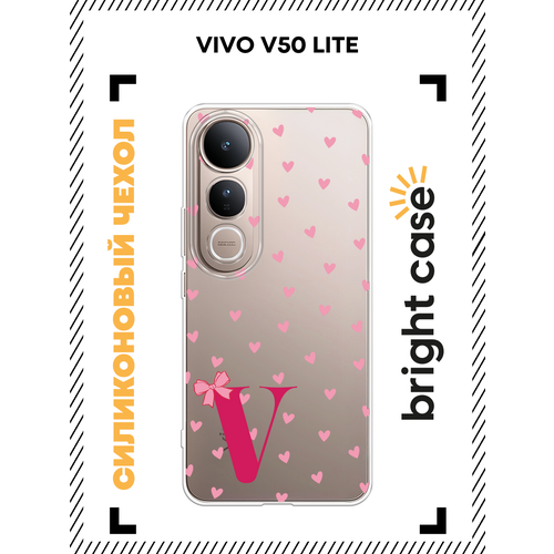 Чехол на Vivo V50 lite / Виво В50 Лайт с принтом Буква V сердечки, прозрачный