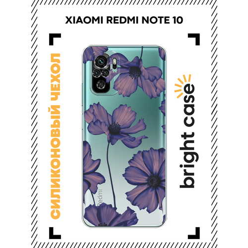 Чехол на Xiaomi Redmi Note 10/Note 10S/Poco M5s / Сяоми Редми Нот 10/Нот 10S/Поко M5s с принтом Фиолетовые космеи, прозрачный