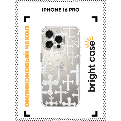 Чехол на Apple iPhone 16 Pro / Айфон 16 Про с принтом Белые кресты, прозрачный