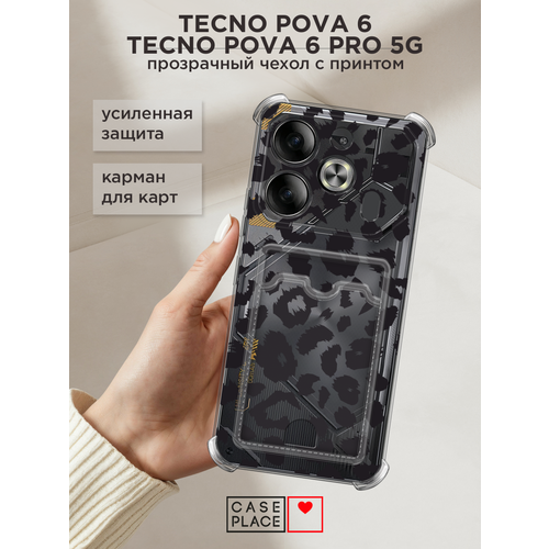 Чехол на Tecno Pova 6/6 Pro 5G (Текно Пова 6/6 Про) с картой и принтом Леопардовый принт на прозрачном