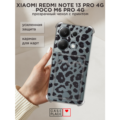 Чехол на Xiaomi Redmi Note 13 Pro 4G/POCO M6 Pro 4G (Сяоми Редми Нот 13 Про 4G/Поко М6 Про 4G) с картой и принтом Леопардовый принт на прозрачном