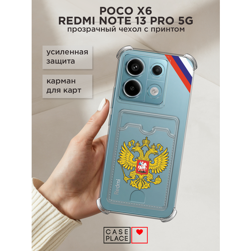 Чехол на Poco X6/Redmi Note 13 Pro 5G (Поко X6/Редми Нот 13 Про 5G) с картой и принтом "С гербом России"