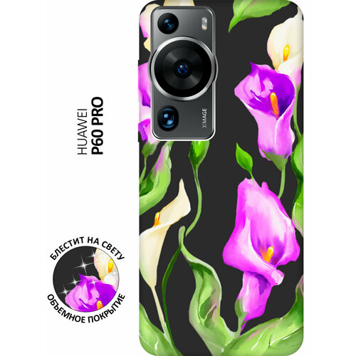 Матовый Soft Touch силиконовый чехол на Huawei P60 Pro, Хуавей П60 Про с 3D принтом "Amazing Callas" черный
