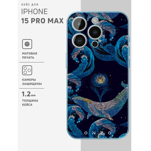 Защитный чехол для iPhone 15 Pro Max / Айфон 15 Про Макс бампер прозрачный голубой, с принтом "Киты"