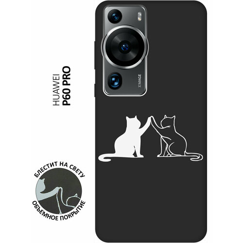 Матовый Soft Touch силиконовый чехол на Huawei P60 Pro, Хуавей П60 Про с 3D принтом "Cats W" черный