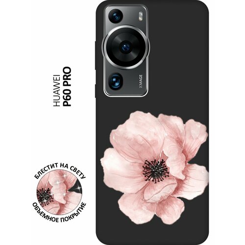 Матовый Soft Touch силиконовый чехол на Huawei P60 Pro, Хуавей П60 Про с 3D принтом "Pink Flower" черный