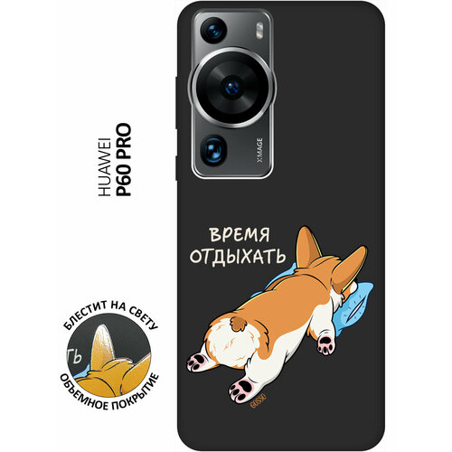 Матовый Soft Touch силиконовый чехол на Huawei P60 Pro, Хуавей П60 Про с 3D принтом "Relax for corgi" черный