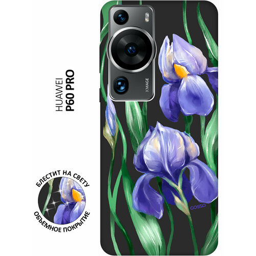 Матовый Soft Touch силиконовый чехол на Huawei P60 Pro, Хуавей П60 Про с 3D принтом "Amazing Irises" черный