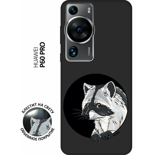 Матовый Soft Touch силиконовый чехол на Huawei P60 Pro, Хуавей П60 Про с 3D принтом "Raccon in a Hollow" черный