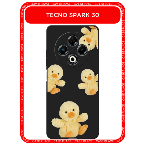 Черный матовый чехол на Tecno Spark 30 / Текно Спарк 30 с принтом Плюшевые утки